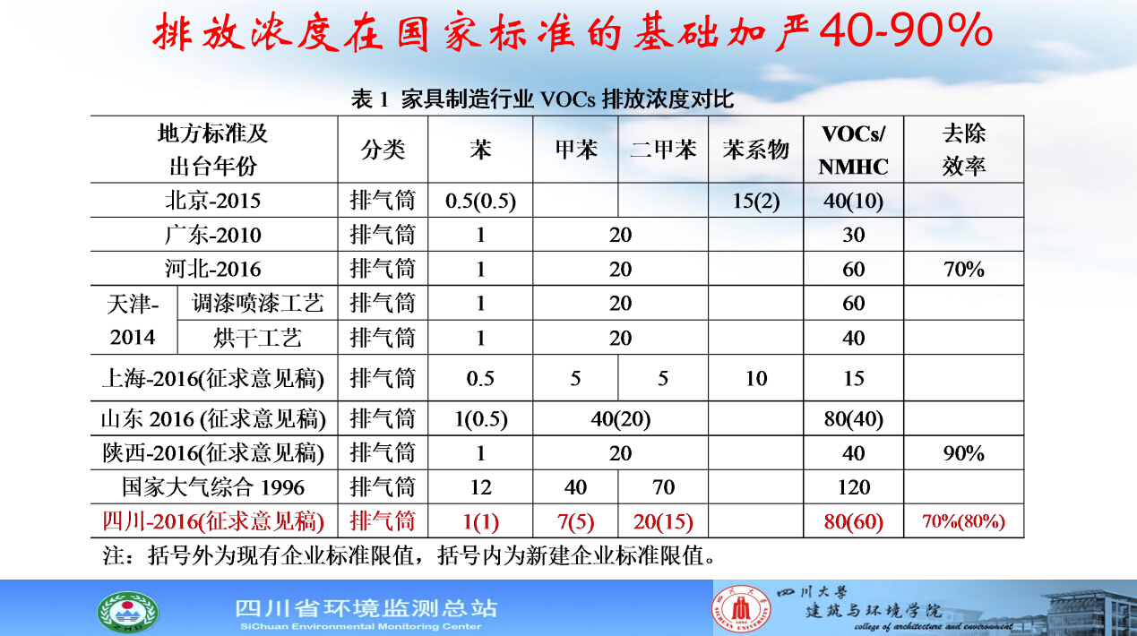 為此環(huán)保部門將提高環(huán)境執(zhí)法能力,進(jìn)一步加大執(zhí)法力度,依法嚴(yán)懲暗管排污、非法處置危險(xiǎn)廢棄物和有毒物、不正常運(yùn)行和使用治污設(shè)施、偽造或篡改環(huán)境監(jiān)測數(shù)據(jù)等惡意違法行為。規(guī)定了10個(gè)重點(diǎn)行業(yè)的VOCs排放限值和控制要求,包括了木質(zhì)家具制造、印刷、石油煉制與石油化學(xué)、涂料、油墨及類似產(chǎn)品制造、橡膠制品制造、汽車制造、表面涂裝、農(nóng)藥制造、醫(yī)藥制造。電子產(chǎn)品制造行業(yè),涵蓋了全省工業(yè)企業(yè)80%以上的VOCs排放總量。新排放標(biāo)準(zhǔn)更加嚴(yán)格,苯、甲苯、二甲苯、非甲烷總烴的排放濃度在國家綜合排放標(biāo)準(zhǔn)的基礎(chǔ)上分別加嚴(yán)了92%、87%、78%、50%,排放速率在國家排放標(biāo)準(zhǔn)的基礎(chǔ)加嚴(yán)50%-80%。
