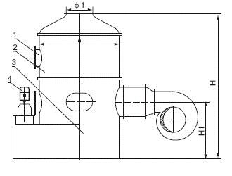 1、觀察孔 2、凈化塔 3、循環(huán)水箱 4、循環(huán)水泵