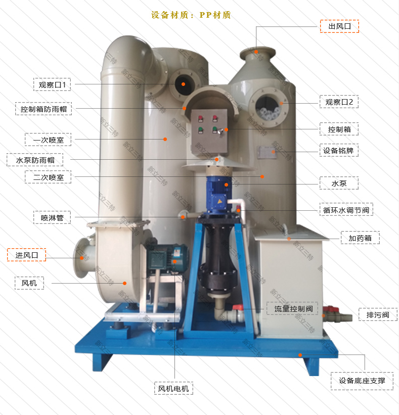 ◆ 雙塔噴室,廢氣進(jìn)入一次噴室處理過再進(jìn)入二次噴室進(jìn)行處理,效果更佳!