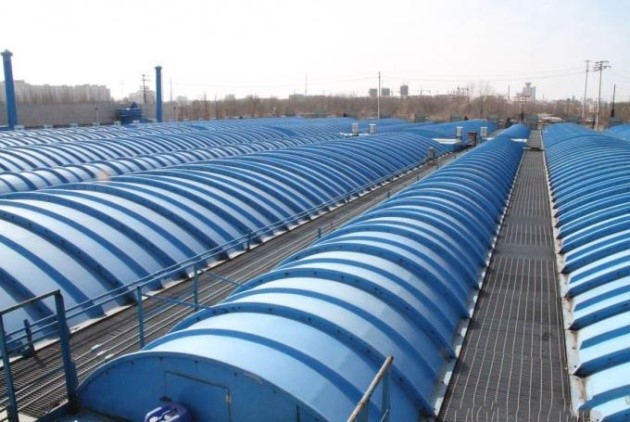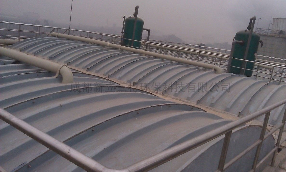 用于污水池和氧化溝的密封,防止臭氣散發(fā)。在蓋板上設排氣口,將臭氣用管道引出至除臭設備。